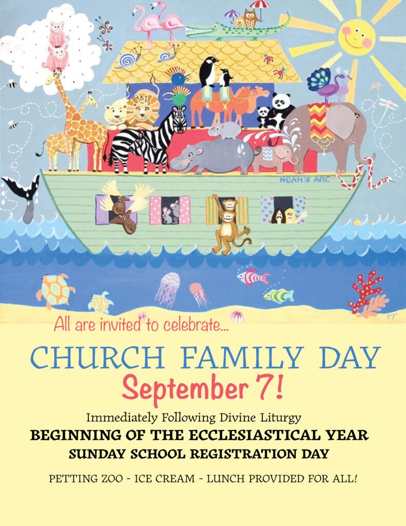 Each year we celebrate the New Ecclesiastical Year with Family Day.  This year, it is scheduled for September 7.  It is the Sunday before the solemn Exaltation of the Holy Cross, we will have a petting zoo and Ice cream, and a picnic lunch for all!  Come with your loved ones and friends to begin the ecclesiastical year with Divine Liturgy and a day of family fun!