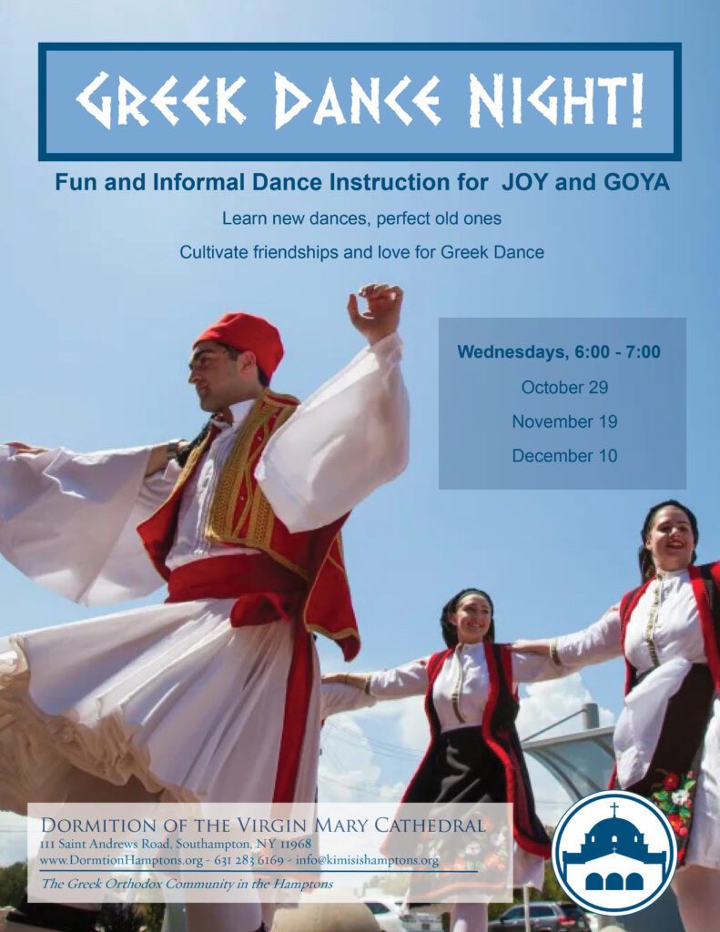 We are excited to inform you that Dormition of the Virgin Mary will be offering Greek Dance Nights for youth on Wednesday, October 29. from 6:00 – 7:00 PM. There will also be Greek Dance Nights on November 19 & December 10.