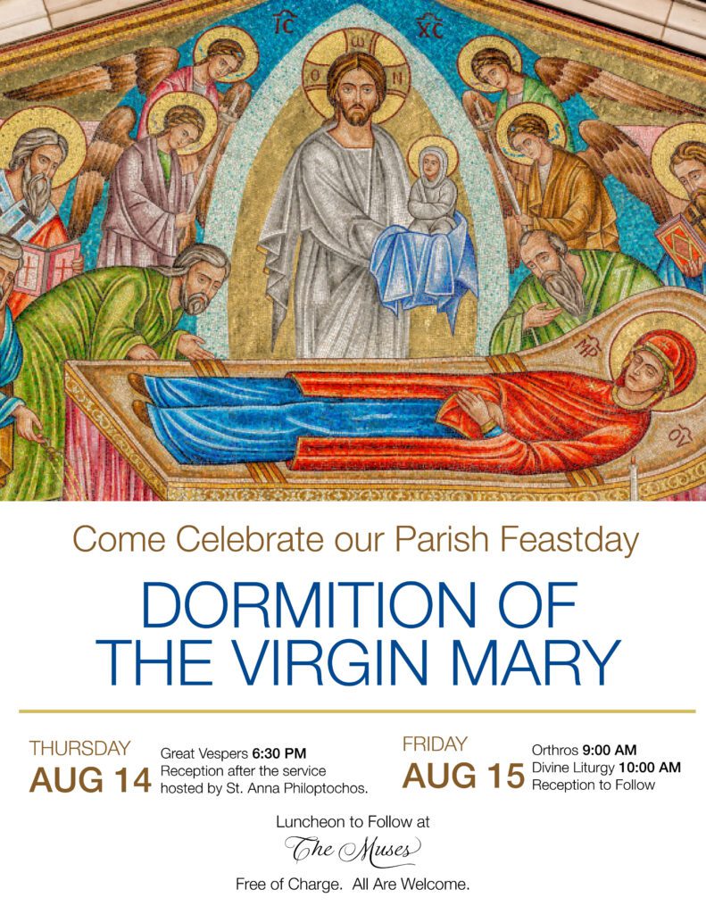 Divine Liturgy: August 15, 10:00 AM, preceded by Orthros at 9:00
