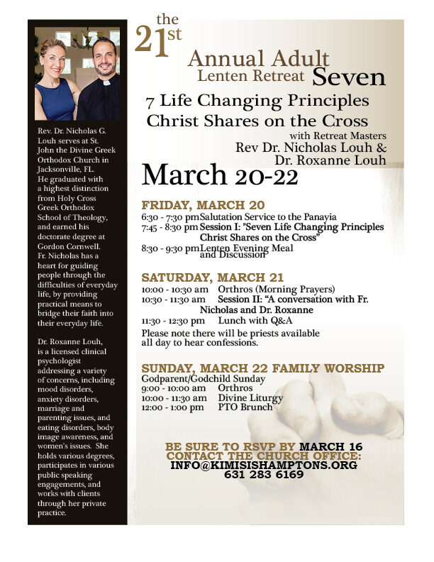 The 21st Annual Johnides Family FoundationLenten RetreatSeven Lesson Christ Gives Us from the Crosswith Retreat MastersRev. Dr. Nicholas&Dr. Roxanne Louh
